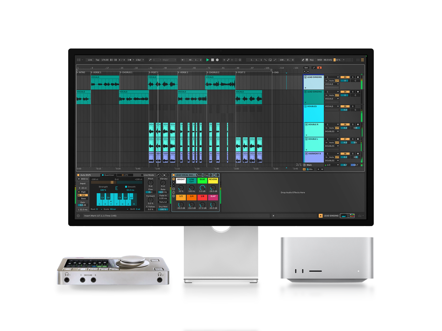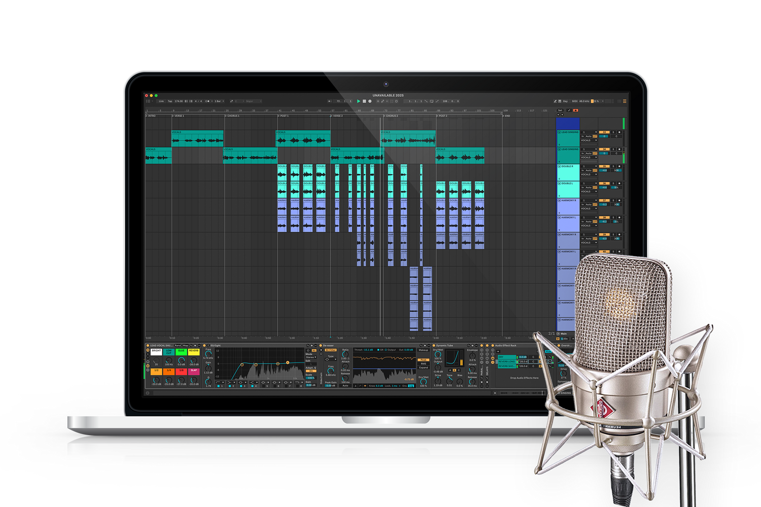 Lead Vocal Sauce uses 100% Stock Ableton Plugins organized in an Audio Effect Rack with 8 Pre-Mapped Macro Controls for easy mixing.